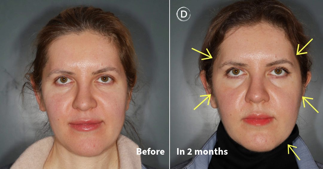 Our thrilled patient attests to always looking rested, even on days without rest. With improved skin quality and noticeable lifts in the temporal and cheek zones, the overall oval of the face is beautifully enhanced.