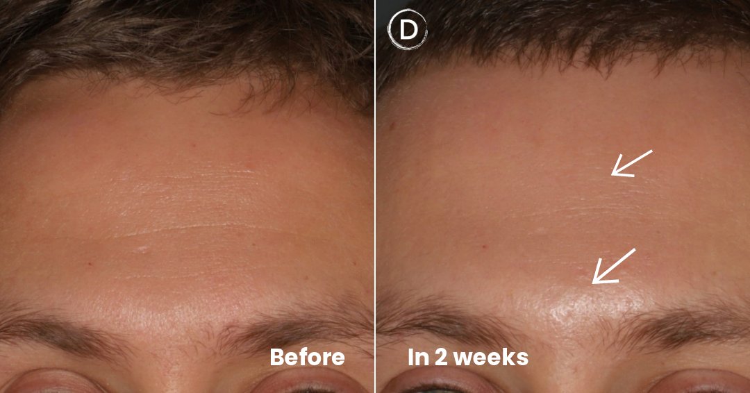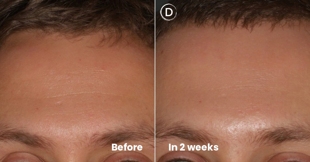 Our young patient, in his early 30s, has noticed mild forehead wrinkles, and we aim to prevent their progression. Botox injections were administered, resulting in a smoothed appearance and a natural glow.