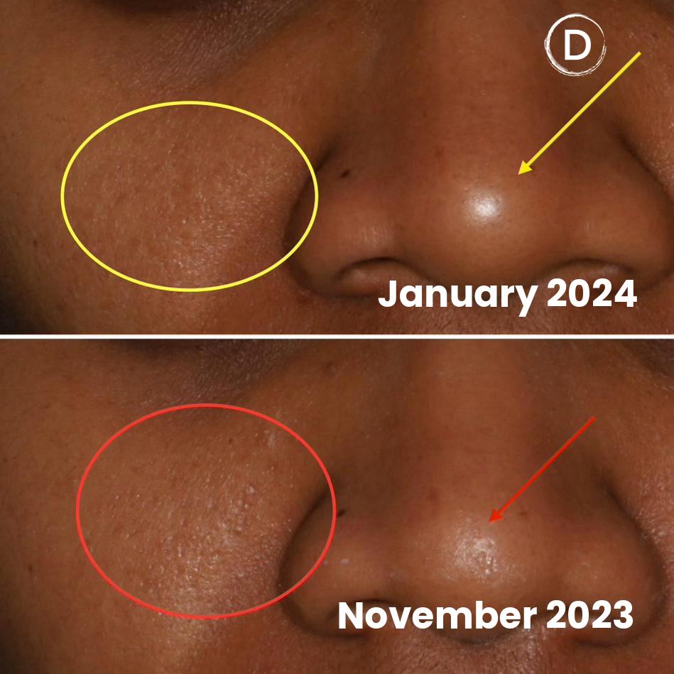 Before and after pores reduction treatment and texture imperfections with Ultra laser (Lutronic)