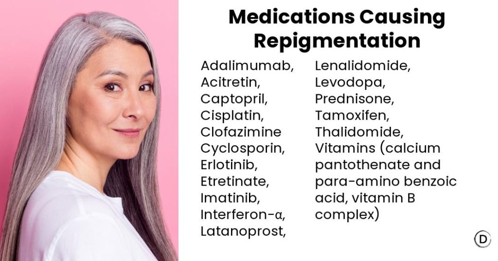 While some reports indicate that gray hair can occasionally regain color, it’s often temporary and difficult to control. Some medications were reported to reverse hair color.