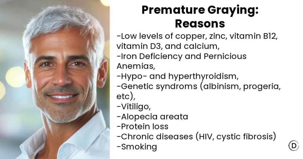 Other factors like smoking, stress, genetic conditions, health conditions, and diet can contribute to premature graying, but the strongest influence remains genetic.