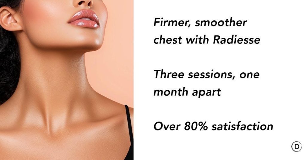 The underlying cause of most décolletage aging is collagen and elastin decline. Once this process is underway, topical skincare can slow it, but cannot reverse it meaningfully. This is where Radiesse comes in.