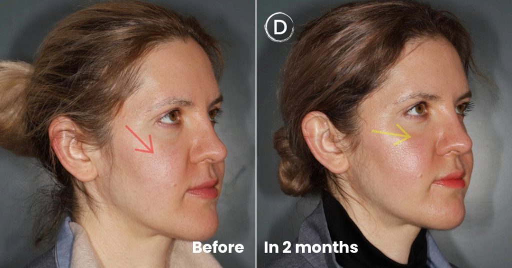 Facial volume loss: hollow cheeks and temples